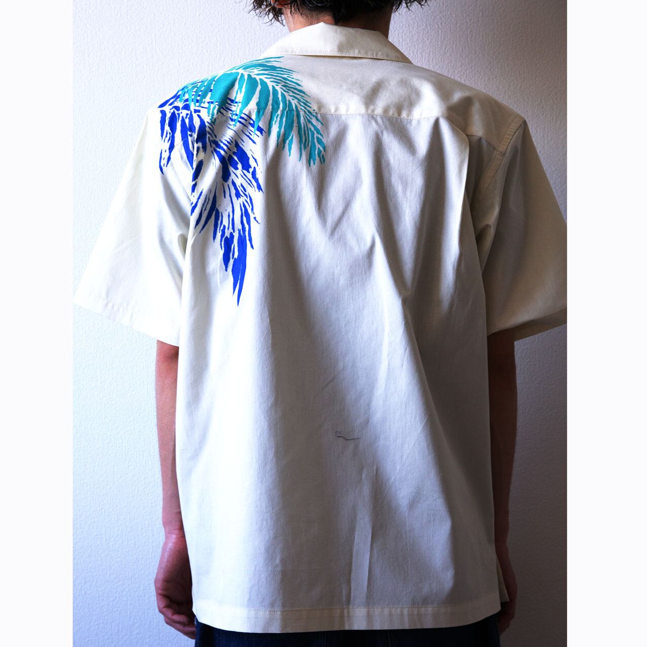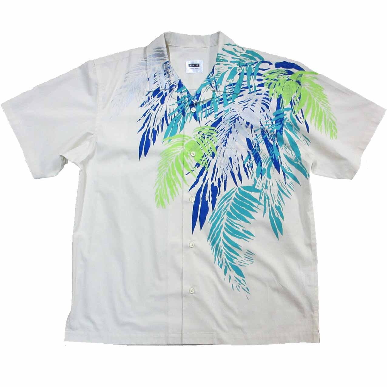 京都シャツのレトロ感に合う柄として生まれた伝統的アロハ定番柄ヤシの葉を大胆に配置